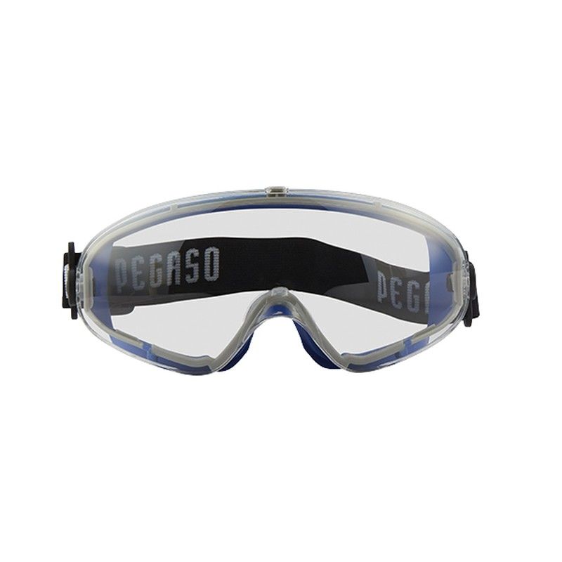 Gafa de seguridad antilíquidos. Montura integral con gran visión panorámica. Frontal sobreinyectado en goma antideslizante. Su diseño está pensado especialmente para permitir indistintamente su uso sobre gafas correctoras o sin ellas. Antiraya, antivaho, con banda elástica y sobregafa.