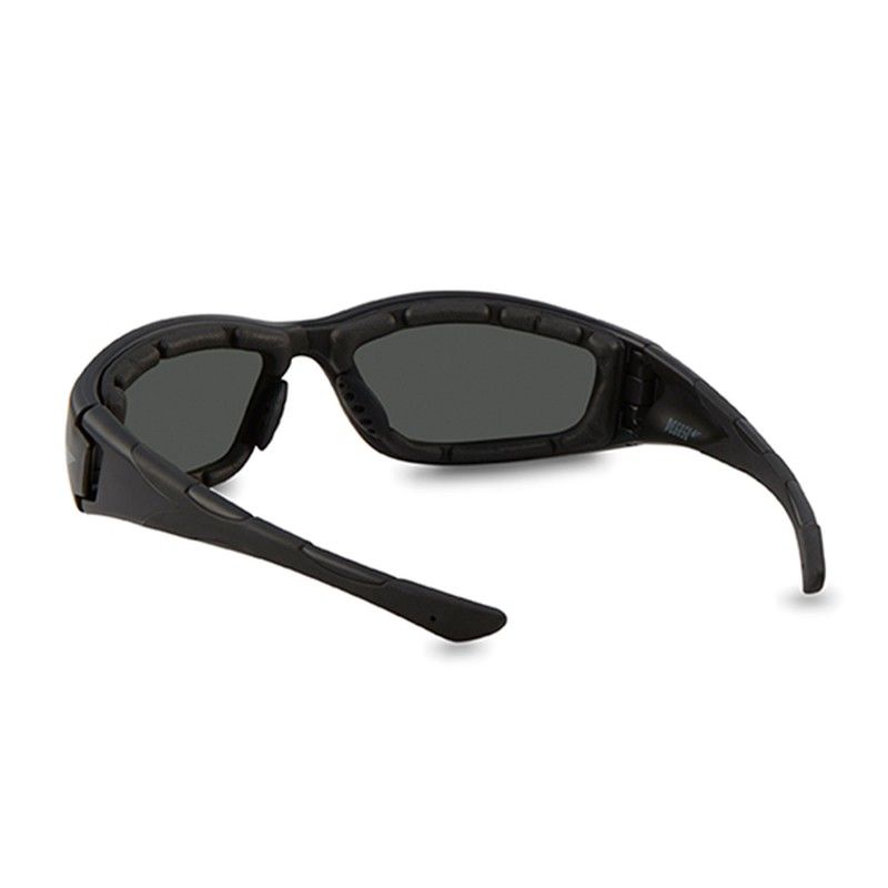 Gafa de protección polarizada. Montura envolvente dotada de un puente y varilla coinyectadas goma antideslizante y foam interior extraible. Diseño, ergonomía y confort nivel premium.